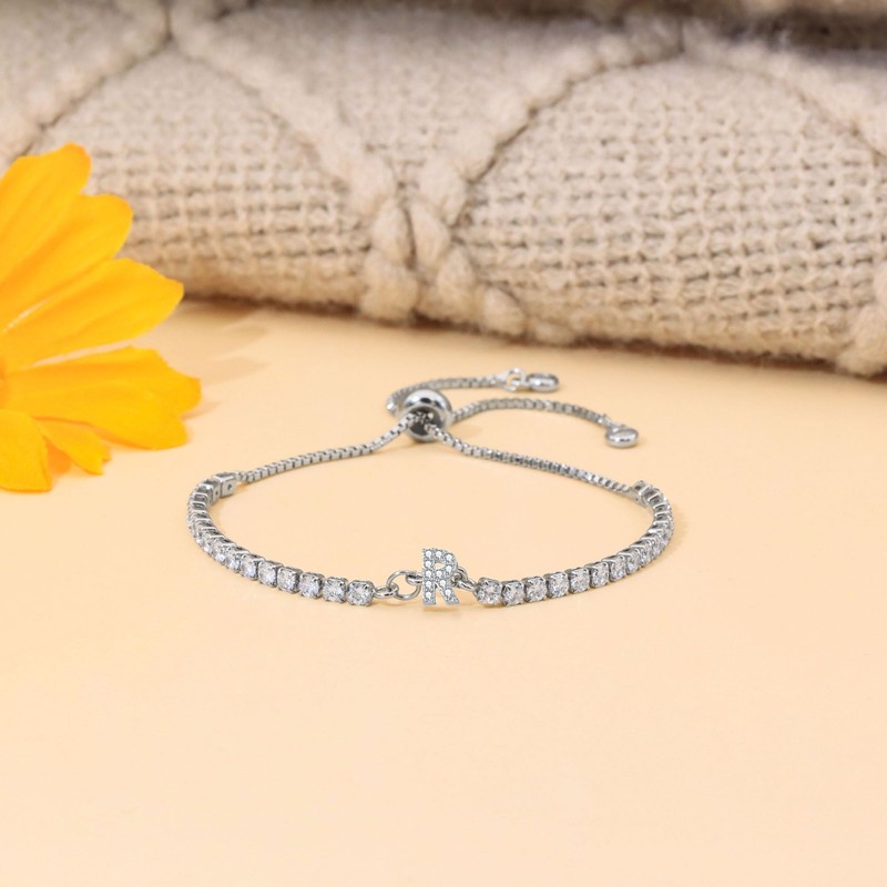 Tibond Bracelets for Womens Initial Letter Bracelets Tennis Bracelet for Ladies Dainty Adjustable Crystal Zirconia Bracelet Birthday Christmas Jewellery Gifts for Friends Mum Daughter (R)
