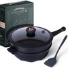 TIBORANG 8 in 1 Multipurpose 11 Inch 5 Quart Heat Indicator Nonstick Deep Frying Pan with Glass Lid, Stay-cool Handle, Steamed Grid, PFOA-Free,Dishwasher&Oven Safe,Works with All Stovetops (Black)