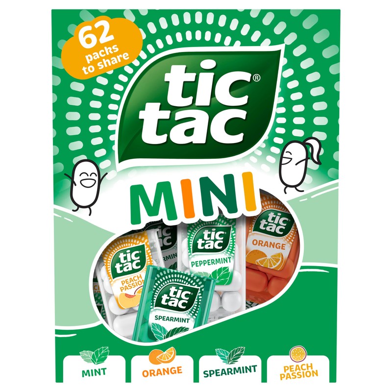 Tic Tac Mini Mints, Variety Share Pack 62 Pack, 211g, Orange Peppermint Spearmint Peach-Passion flavours