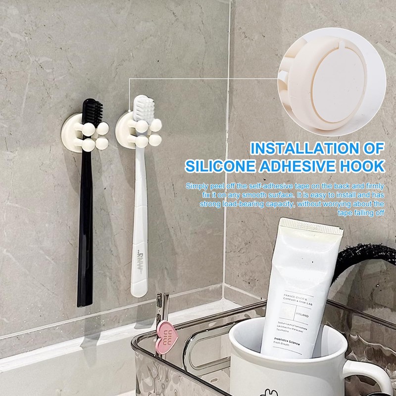Ticfox Silikon-Zahnbürstenhalter, 4 Stück Selbstklebender elektrischer Zahnbürstenhalter, multifunktionaler Wandhaken für Bad, Küche, Frostweiß
