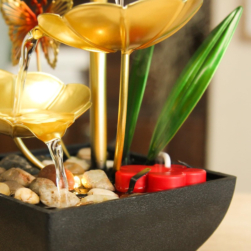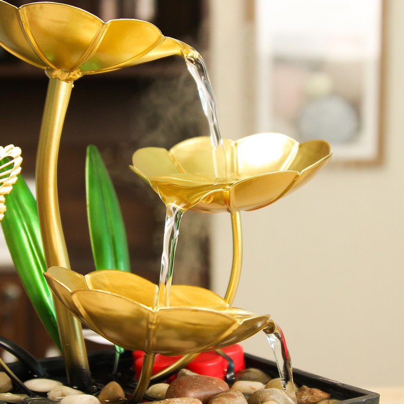 - 2. Relaxing and Soothing: Enjoy the calming sound of water flowing and a warm light atmosphere with this USB-powered desktop LED water fountain.