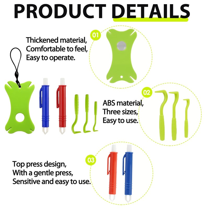 - Practical set: includes 3 tick hooks, 2 tweezers and 1 green card, portable for travel or outdoor activities, as a tick set for human solution.