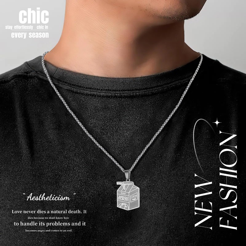 Ticome Exquisite Stainless Steel Juice Box Pendant Necklace,Simple Personality Fashion Jewelry Hip Hop Trend Necklace,Beverage Box Pendant Presents Decorations(Silver)