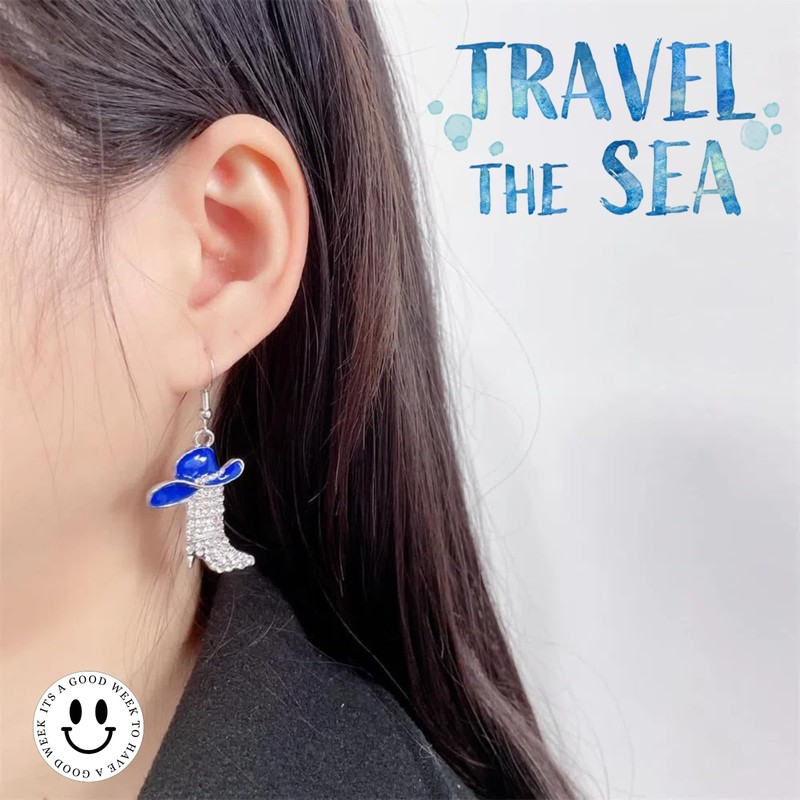 - 【Earring Material】Blue hat cowboy boots earrings have been carefully polished,not only excellent texture,but also effectively prevent oxidation,discoloration,to ensure lasting wear.The rhinestones inlaid above are of high quality,and each one is crystal clear and reflects a charming light... These rhinestones are so strong and durable that you don't have to worry about falling off.