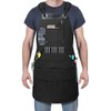 - [HOLD ALL YOUR ESSENTIAL TOOLS] This tool apron is designed with clips and pockets to carry all necessary tools such as safety glasses, pens, note pad, phone, gloves, or hammer. There is also a built in magnetic to hold screws