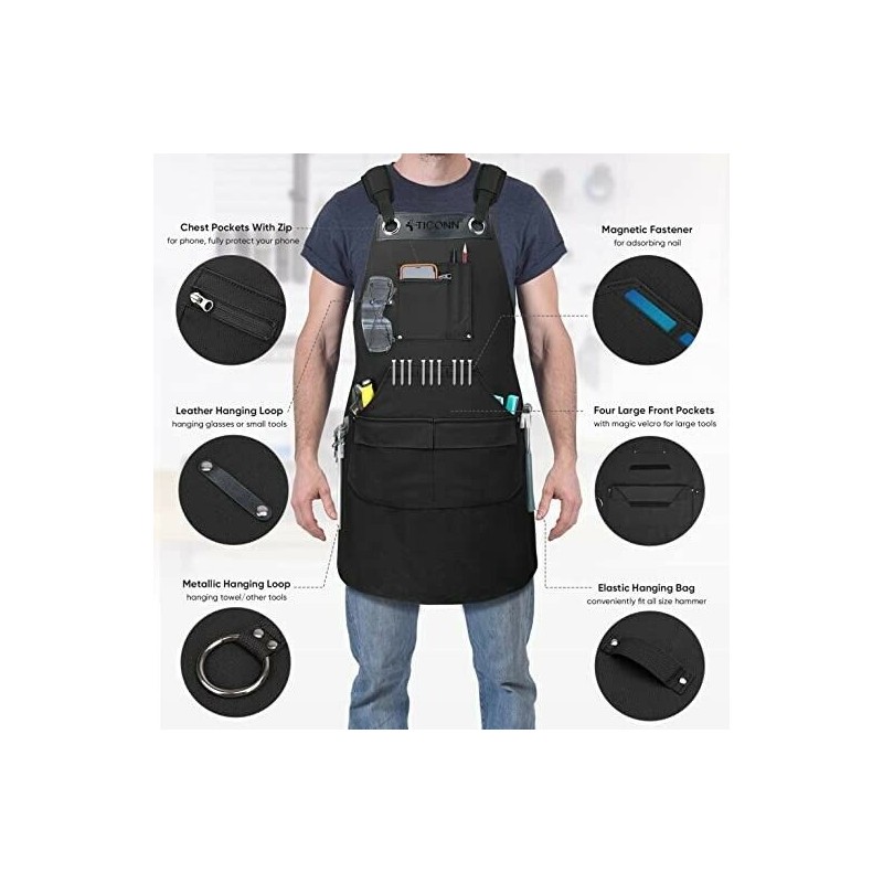 - [VERSATILE & MULTI-FUNCTIONAL] Our shop apron is designed to fit multiple applications with different 3 colors to select. Great to be used as a welding apron, machine shop apron, woodwork apron, barber apron, artist apron, garden apron, restaurant apron, BBQ apron and more. Get a TICONN apron to get your job done in style!