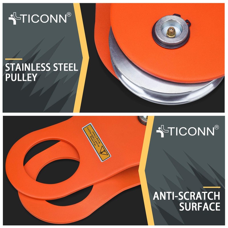 TICONN 10 Ton Winch Snatch Block Towing Pulley Blocks 22,000 LBS Capacity, Heavy Duty Offroad Recovery Accessory for Truck, Tractor, ATV & UTV