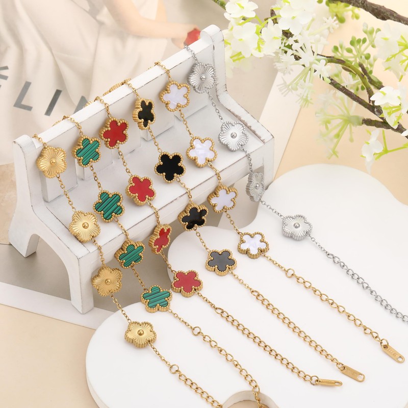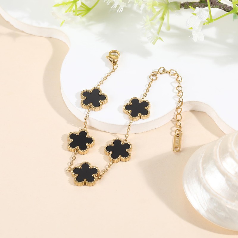 TICVRSS Van Cleef Clover Bracelets for Women, 18K Gold Plated Fashion Bracelet Four Leaf Lucky 4 Leaf Bracelet Jewelry Gifts (Black)