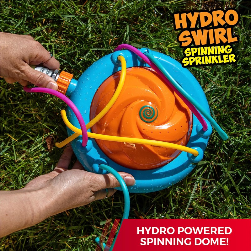 - EASY TO USE & LIGHTWEIGHT – The Hydro Twirl outdoor sprinkler for kids is easy to use allowing for longer hours of playtime. Simply connect it to a standard garden hose and let its six wiggle tubes spin swirling geysers of water high and wide.