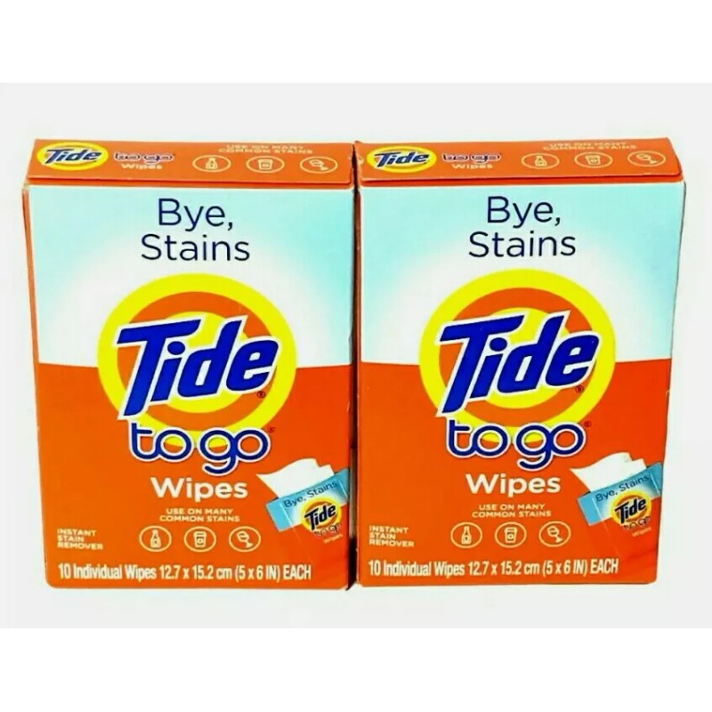 2 Packs of Tide to Go Instant Stain Removing Wipes, 10 Count Wipes ( Lot of 2 )