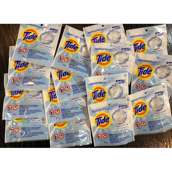 Tide Pods Free & Gentle Single Use Travel Pack Lot X15.