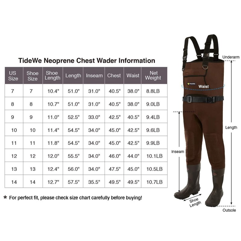 - 【100% Waterproof】Besides premium quality material guarantee, the TideWe waders also feature with armor weld double-stitched and sealed seams, polyurethane-coated leggings, all these give extra protection and make sure there is no leak.