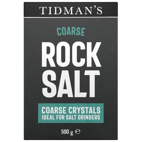 Product DescriptionTidman's Natural Rock Salt are coarse crystals ideal for salt grinders. It is extracted from ancient rock deposits. Perfect for rubbing into meat, chicken and for roast potatoes or as a topping on Italian focaccia breadIngredientsCoarse Rock SaltManufacturer Contact InformationThe Maldon Crystal Salt Company Limited, Maldon, Essex, England.