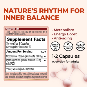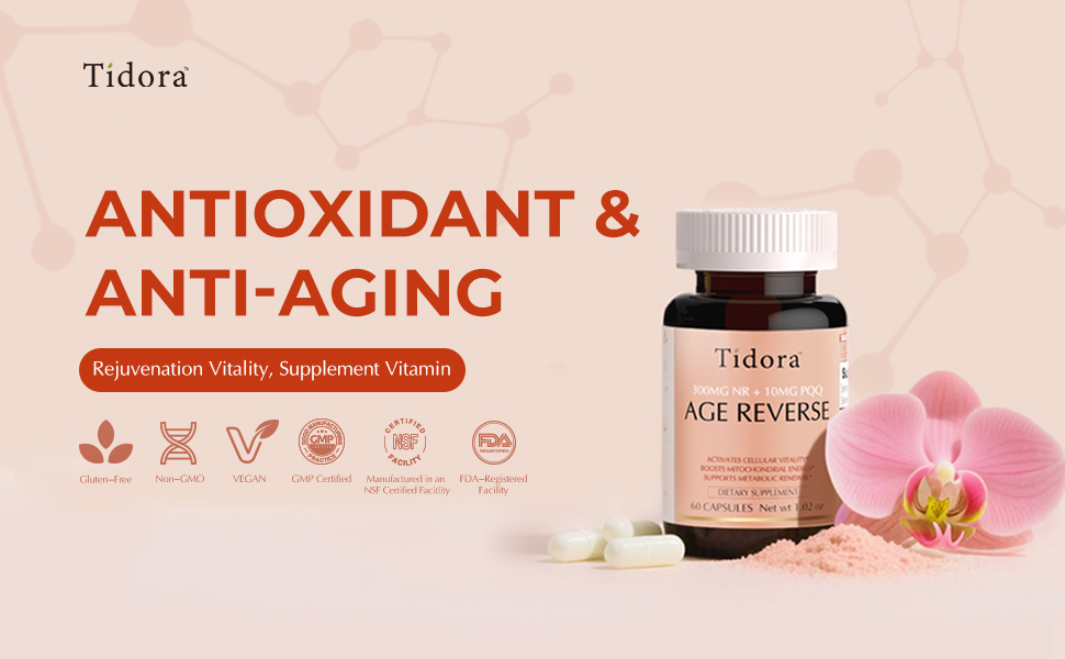 Tidora Antioxidant & Anti-Aging NR Capsules 300mg - Boost NAD,Cellular Energy, Rejuvenation & Vitality for Adults - 60 Capsules Healthcare Dietary Fitness Edible Supplement Vitamin