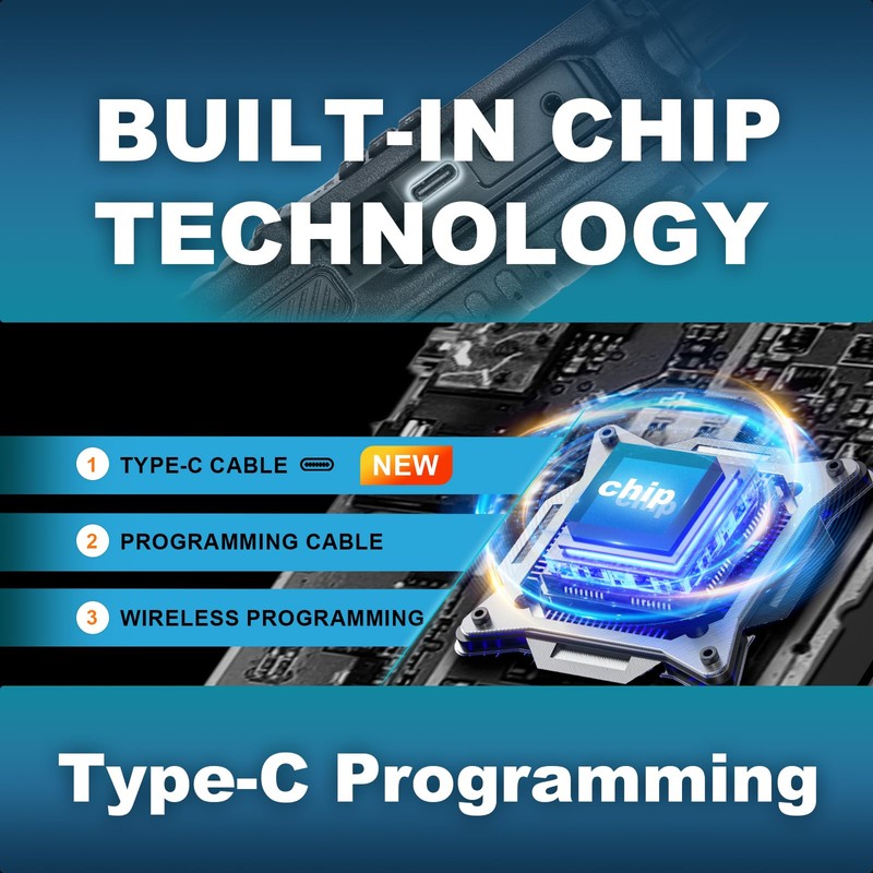 - 【Versatile Programming Option】TD-H3 is the first radio equipped with an internal programmable chip in history, which supports USB C cable programming (Side port). USB-C cable of TD-H3 supports Bluetooth programming via phone. While we have maintained the traditional 2-prong interface for compatibility and also support programming with CHIRP and CPS software, experiencing the convenience of Multiple programming.