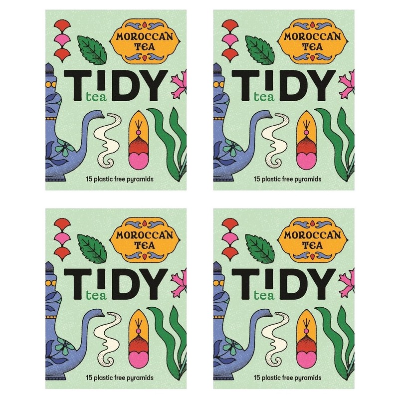 Tidy Tea, Moroccan Tea, 4 x 15 Plastic Free Pyramid Tea Bags, a Delicate & Smooth Green Tea with Moroccan Mint