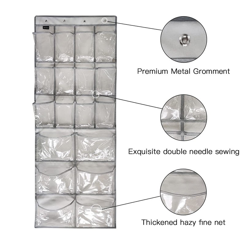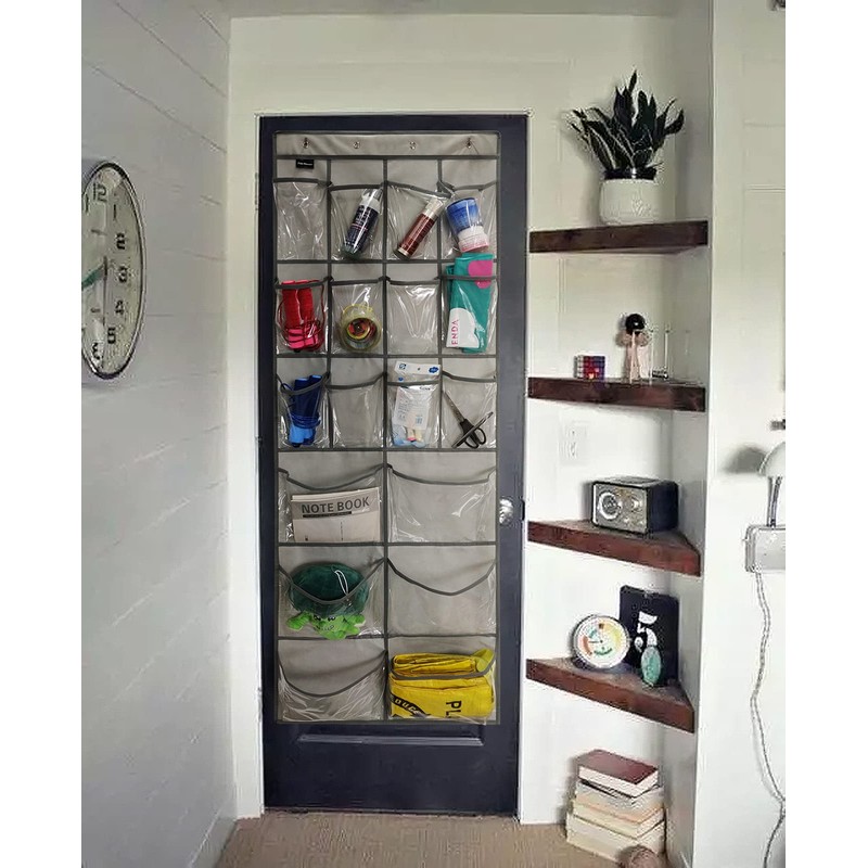 - 【2 Pack Over the Door Organizer】with 6 roomy and large PVC pockets+12 PVC pockets, hold more than 12 pairs shoes to free up floor/shelf space.