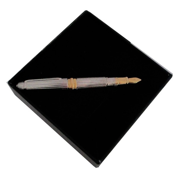 Tie Clip "Poet" Bicolour Shiny Partially Gold-Plated Without Function! - Includes Gift Box - Beautiful Accessory for Silk Tie, Brass, Without Stone
