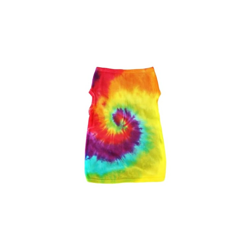 - Vibrant Tie-Dye Design: This dog t-shirt features a stunning tie-dye pattern with vibrant shades of red, orange, yellow, green, blue, and purple.