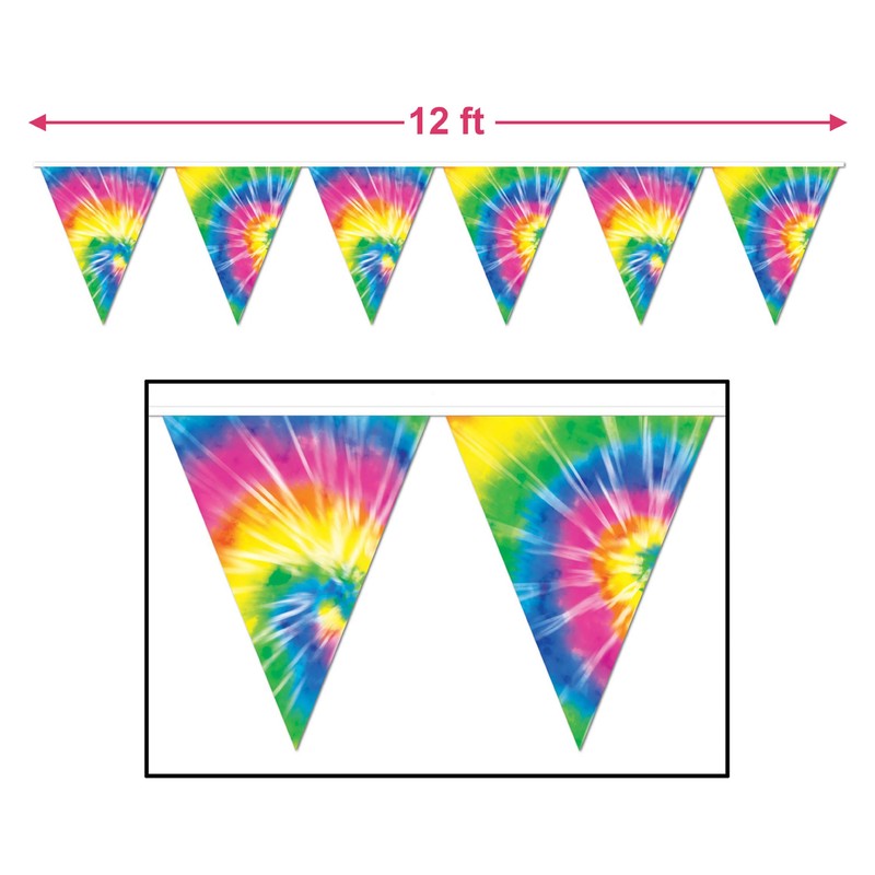 Tie Dye Pennant Banner - Indoor/Outdoor Party Garland Decorations for 60's Decade and Hippie Theme Parties (12' Long, Pack of 2)