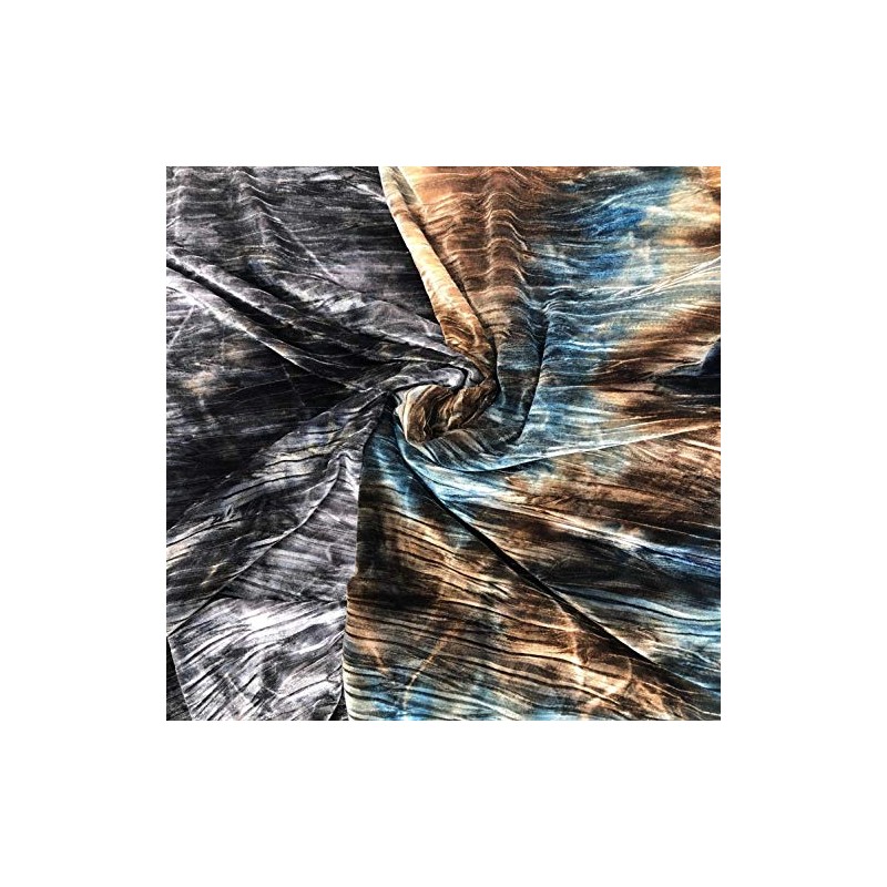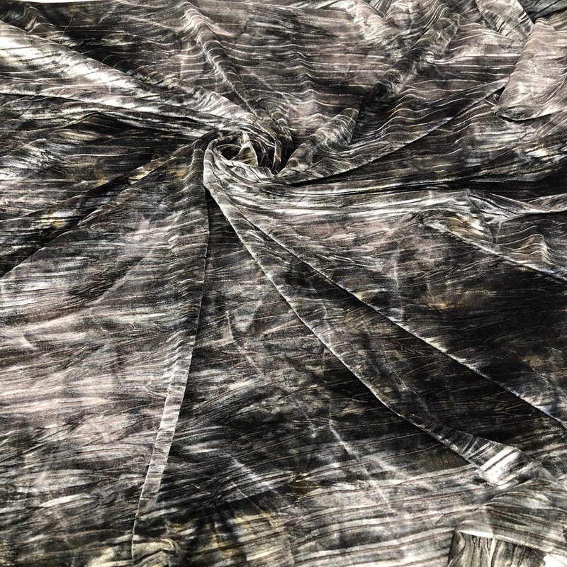 Tie-Dye Striped Crinkled Velvet by Elotex International Fabric (Black Silver)