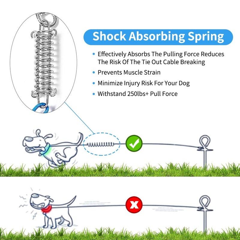 - Ultra-strong tie-out cable also easy to carry. The dog line is very suitable for camping, park, yard, garden and other outdoor activities without worrying about it running away. Warm tips: Please do not let your dog be tied alone for a long time, check your dog in time.