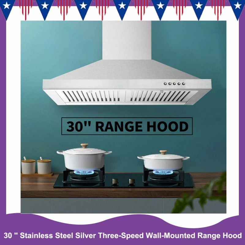 Tieasy 30 '' Stainless Steel Silver Three-Speed Wall-Mounted Range Hood Button Controls