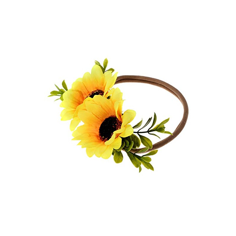 Tieback Daisy Flower Crown Elastic Sunflower Flower Headband Baby Girl Toddler Floral Crown Wreath Newborn Hair Accessories (Sunflower)