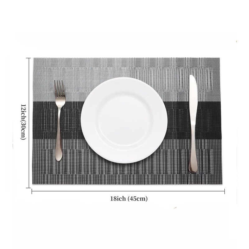 - Standard size: Measuring 18 inches in height and 12 inches in length, these placemats offer ample coverage for your dining setup. Their standard size makes them suitable for most dining tables, adding a neat and polished look while protecting surfaces from everyday messes and wear.