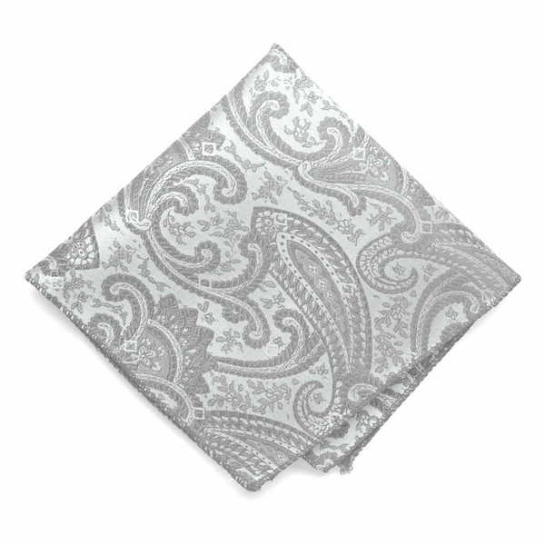 tiemart Pattern Pocket Square (Mercury Silver Clara Paisley)