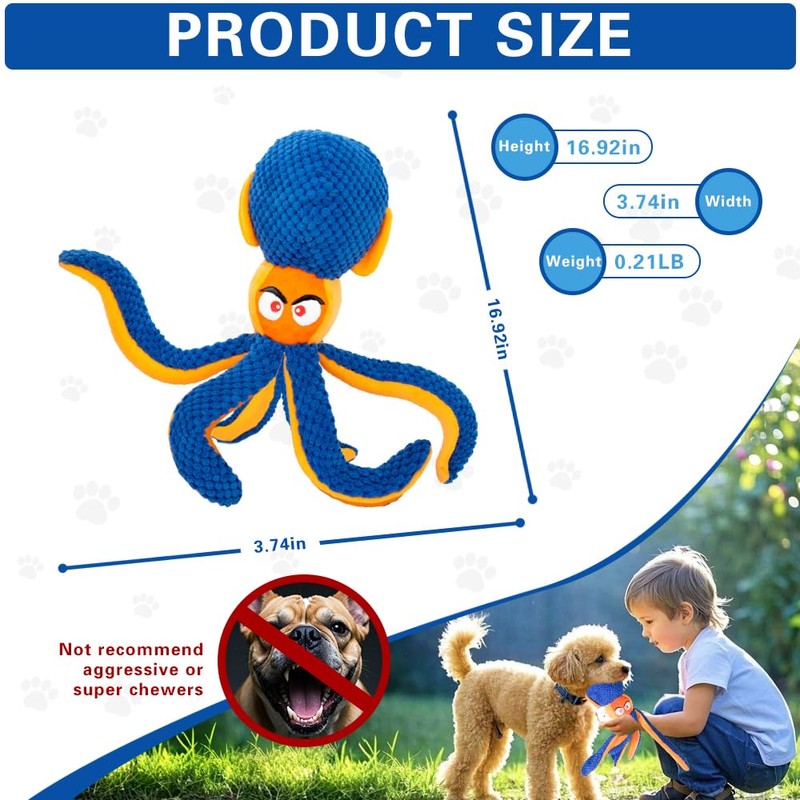 - PERFECT GIFT FOR ANY OCCASION: Whether it’s Christmas, Thanksgiving, Easter, or your dog’s birthday, this adorable octopus plush toy is a fun and thoughtful gift for small, medium, and large dogs. It’s designed to provide hours of play and enrichment for your furry friend. However, it’s not recommended for aggressive chewers. If you’re unsatisfied with the product, feel free to contact us for support.