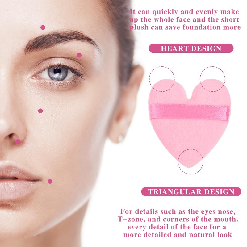 - High-quality MaterialThis heart face powder puff is made of high-quality cotton and soft velvet, which is lint-resistant and easy to clean. For optimal cleaning, we recommend soaking it in mild soap for a few minutes before washing, and air drying. Be careful not to fold and deform when storing. Note: For best results please replace the Makeup Puff every 1-3 months.