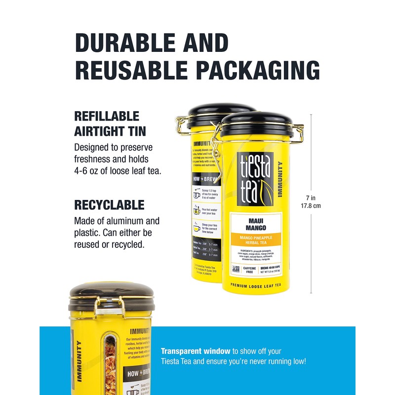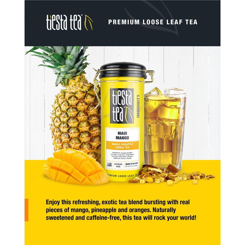 - PREMIUM LOOSE LEAF TEA BLEND of mango, pineapple + oranges is a caffeine free tea that uses natural premium ingredients that you can see, smell, and taste; ditch the single-use herbal tea bags; discover the Tiesta Tea difference