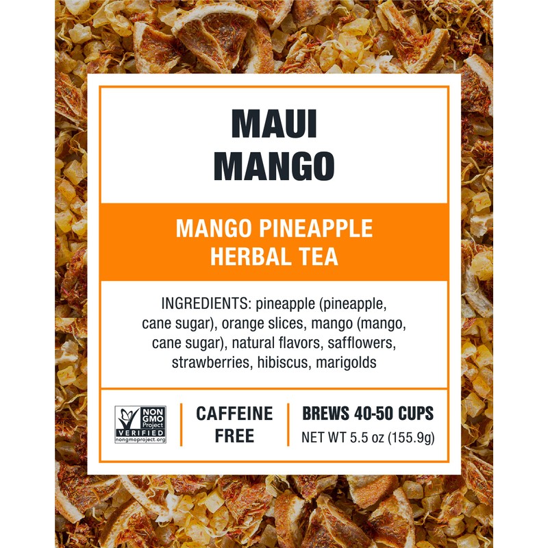 - MANGO PINEAPPLE FRUIT TEA: Indulge in the tropical allure of Maui Mango. This loose leaf blend weaves together the tangy flavors of pineapple, orange, and succulent mango pieces, offering an invigorating taste sensation. It's like a sunny, tropical escape in every cup.