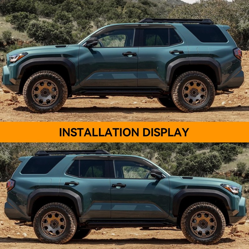 - Easy STICK-ON Style: Tape-on installation, No drilling! The rain guards come with double-sided automotive-grade tape for strong weather resistance. Unlike generic “one-size-fits-most” guards, they specially fit for Toyota 4Runner 2025 2026 Accessories, which integrates body well to drip off water