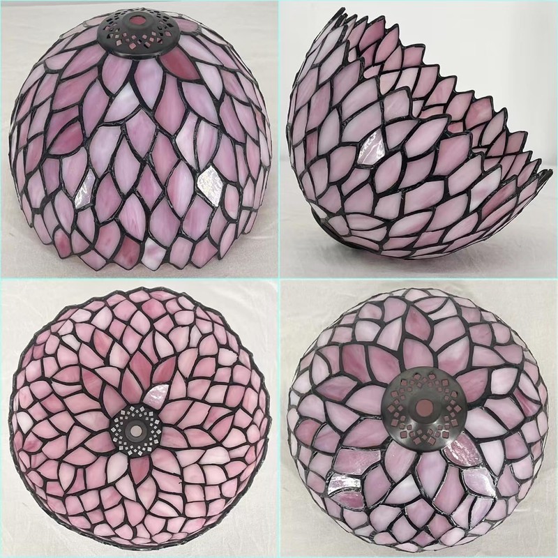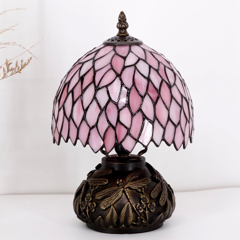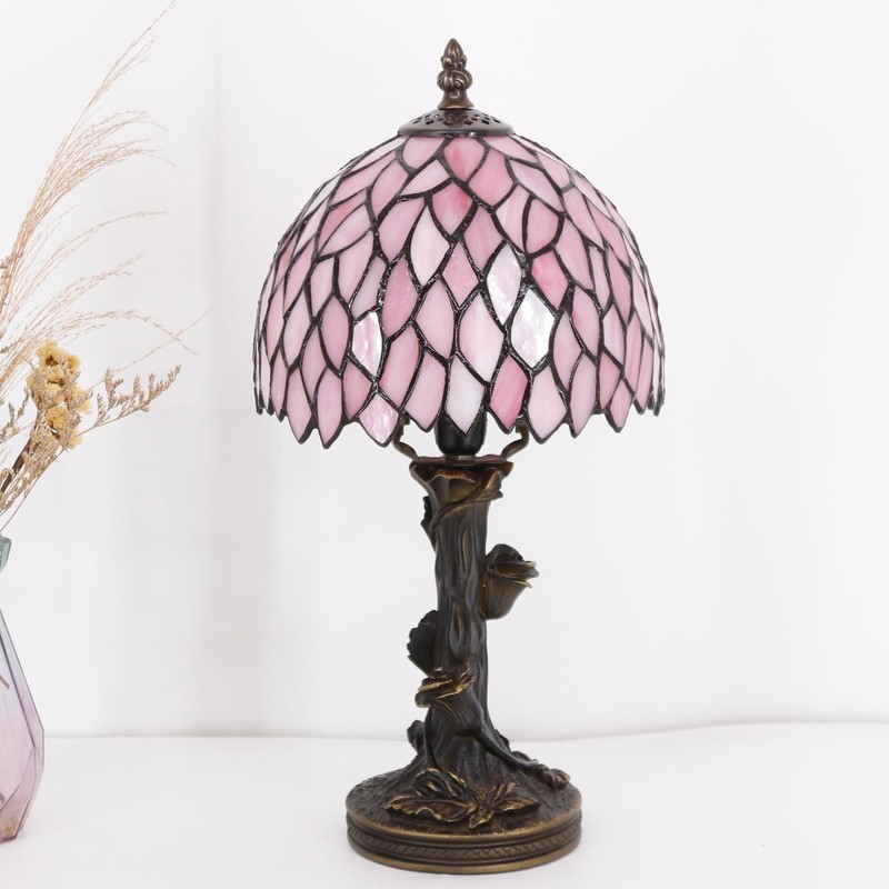 Tiffany Lampshade Replacement Only 8 Inch Stained Glass Wisteria Lamp Shade Fit for Small Table Lamp, Desk Lamp, Pendant Lamp, Ceiling Fixture Pink Table lamp