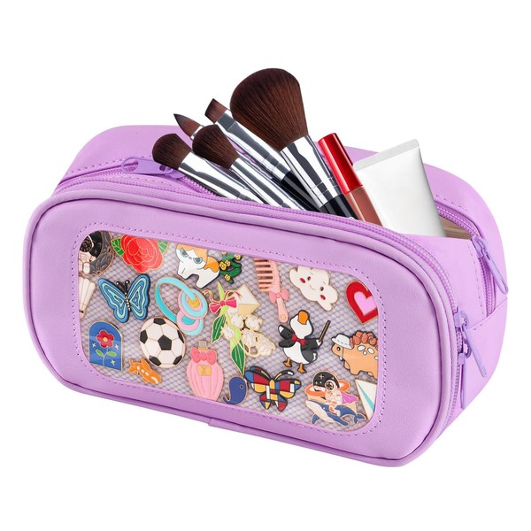 TIFFYONEK Cosmetic Travel Bags For Women, Pin Display Ita Bag Small Makeup Bag Leather Cosmetic Organizer Teen Girl Sleepover Party Toiletries Bag Birthday Christmas Gifts, No Pins, Light Purple
