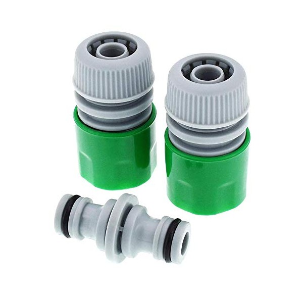 TIFLER Hose Connector Set, 1/2 Inch, Two Hose Pieces, One Coupling, Garden Hose Connecting