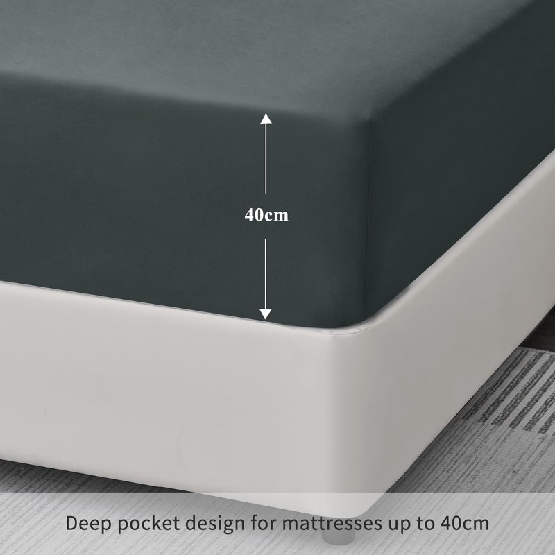 Tifschlaf King Size Fitted Sheet Deep - Dark Grey Kingsize Bed Sheet Extra Deep Pocket 16 inch (40 cm), Soft Brushed Microfiber Mattress Bottom Bedding Sheet, 150x200cm