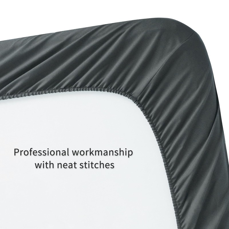• The stretchable elastic around the edges makes it effortless to fit the sheet to your mattress while ensuring a snug fit that prevents the grey sheet from slipping off the corners, providing five-sided protection for your mattress.