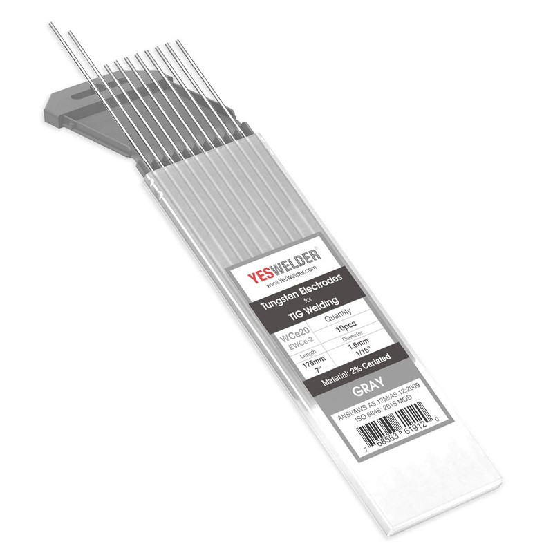 TIG Welding Tungsten Electrode 2% Ceriated 1/16" x 7" (Gray, EWCe-2) 10-pk YESWELDER