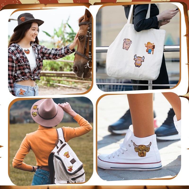 - Delightful Highland Cow Design Set: this inclusive set comes with 48 vintage highland cow embroidered clothing patches; Perfectly meeting your every need for patching clothes or adding a touch of creativity, these charming embroidered patches not only serve a practical purpose, they also help put a personal spin on your outfits