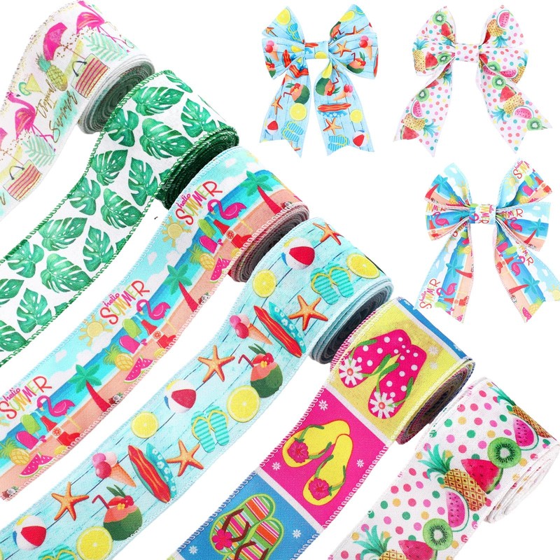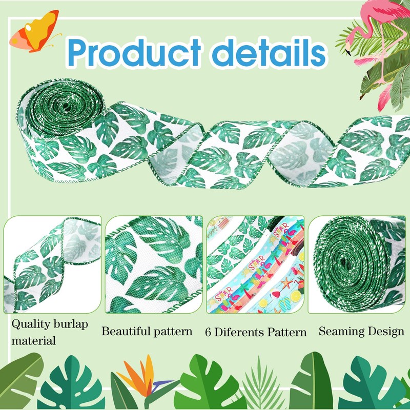 - Exquisite Summer Pattern Design: our summer wired edge burlap ribbons are designed with many summer theme elements, including juicy pineapple and watermelon, tropical flamingos, vibrant palm leaves, colorful flip flops, Hawaiian beach and surfboards patterns, full of summer freshness and vitality, suitable for making summer themed decorations