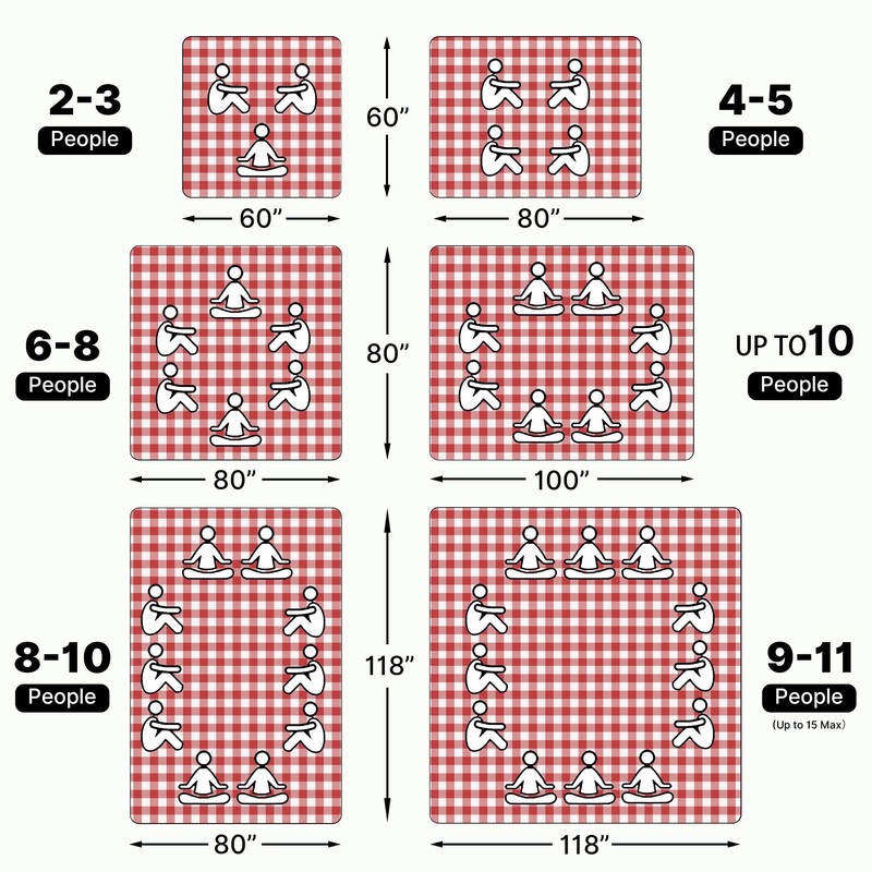 - Multiple Sizes: Available in six sizes for all outdoor needs. Whether you’re using it as a baby play mat, picnic blanket, beach throw, or camping ground cover, there’s a perfect size for every activity — from solo trips to large family outings.