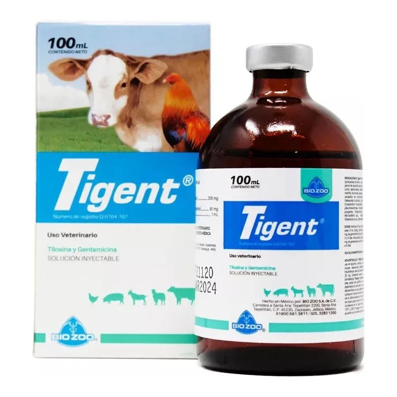 Tigent está indicado en bovinos, ovinos y caprinos (productores de leche y carne). Porcinos de engorda, aves (pollos y pavos de engorda) para el tratamiento de enfermedades infecciosas como salmonelosis, enteritis necrótica, enfermedad respiratoria, metritis, neumonías, erisipela, artritis infecciosa y otros padecimientos causados por microorganismos sensibles a la fórmula como Pasteurella multocida, Escherichia coli, Bordetella bronchiseptica, Erysipelothrix rhusiopathiae, Klebsiella pneumoniae, Actinobacilus pleuroneumoniae, Fusobacterium necrophorum, Corynebacterium pyogenes, Streptococcus haemolyticus, Histophilus somni, Mycoplasma spp., Staphylococcus spp., Pseudomonas sp., Streptococcus s, Salmonella spp., Haemophilus sp., y Rickettsia sp.