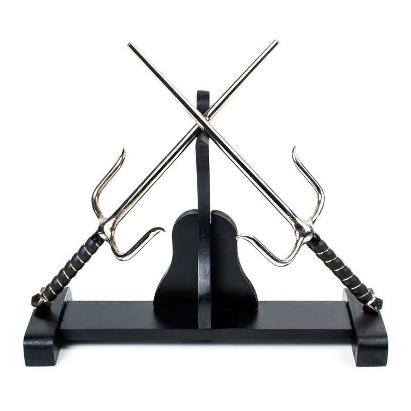 Tiger Claw Kobudo Stand - Sai Kama Display Stand - Black Wooden Stand