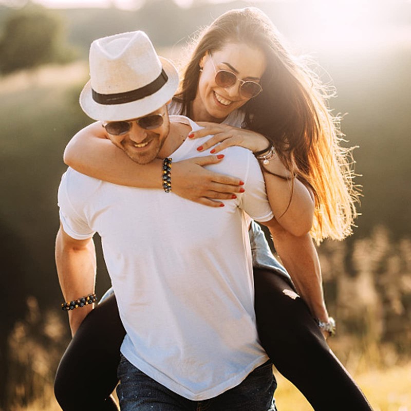 - 【Healing Natural Stone Bracelet】This natural Stone Tiger Eye bracelet is made of premium tiger eye stone and black agate, which has the ability to clear emotions and maintain energy balance. Each gem has its own unique characteristics, and each bead is unique. This bracelet is designed to help balance the body's energy system, bring inner peace, and keep you happy and calm.
