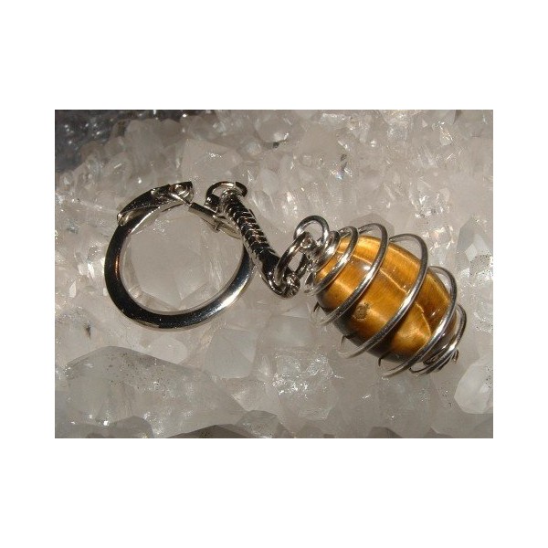 Tiger Eye Spiral Gemstone Crystal Cage Keyring