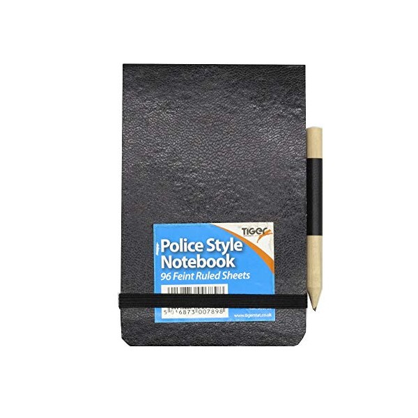 - Popular police style notebook ideal for birdwatchers, referees, shoppers etc. Pocket size (85x130mm) with 96 feint ruled sheets. Elastic closure loop and holder for 90mm pencil (included).