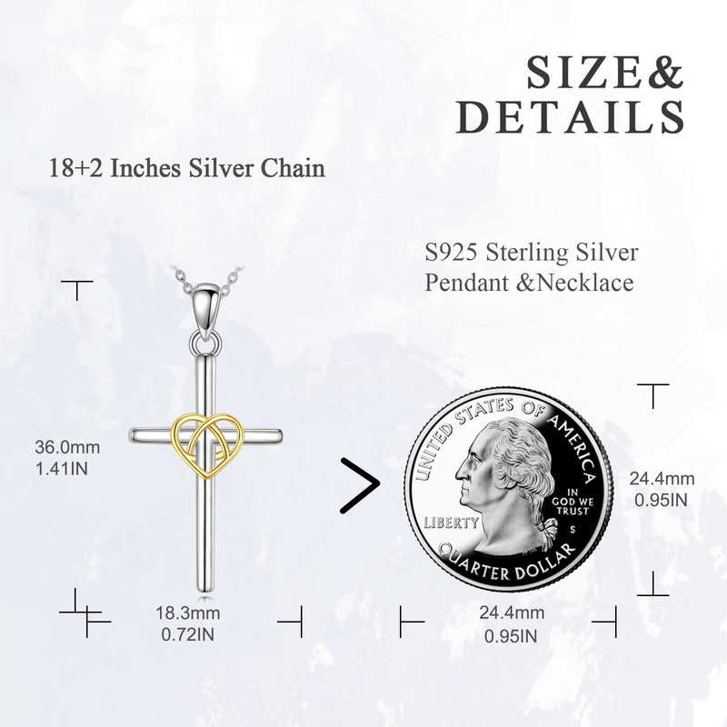 TIGER RIDER Cross Necklace Sterling Silver Gold Heart Cross Pendant Necklace Faith Jewelry Birthday Christmas Gifts for Women Wife